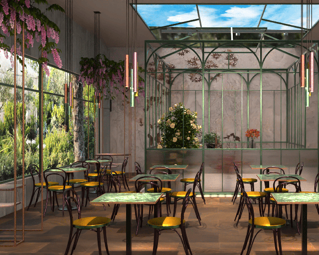 Il nostro progetto di interior design combina un bar e un vivaio, creando un’atmosfera unica e accogliente.